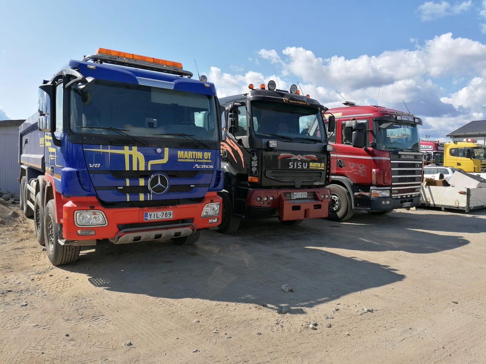 Vaihtolava-, nuppi-, kasettiyhdistelmä- ja nosturiautoja